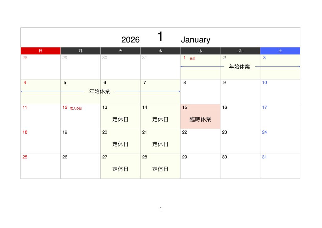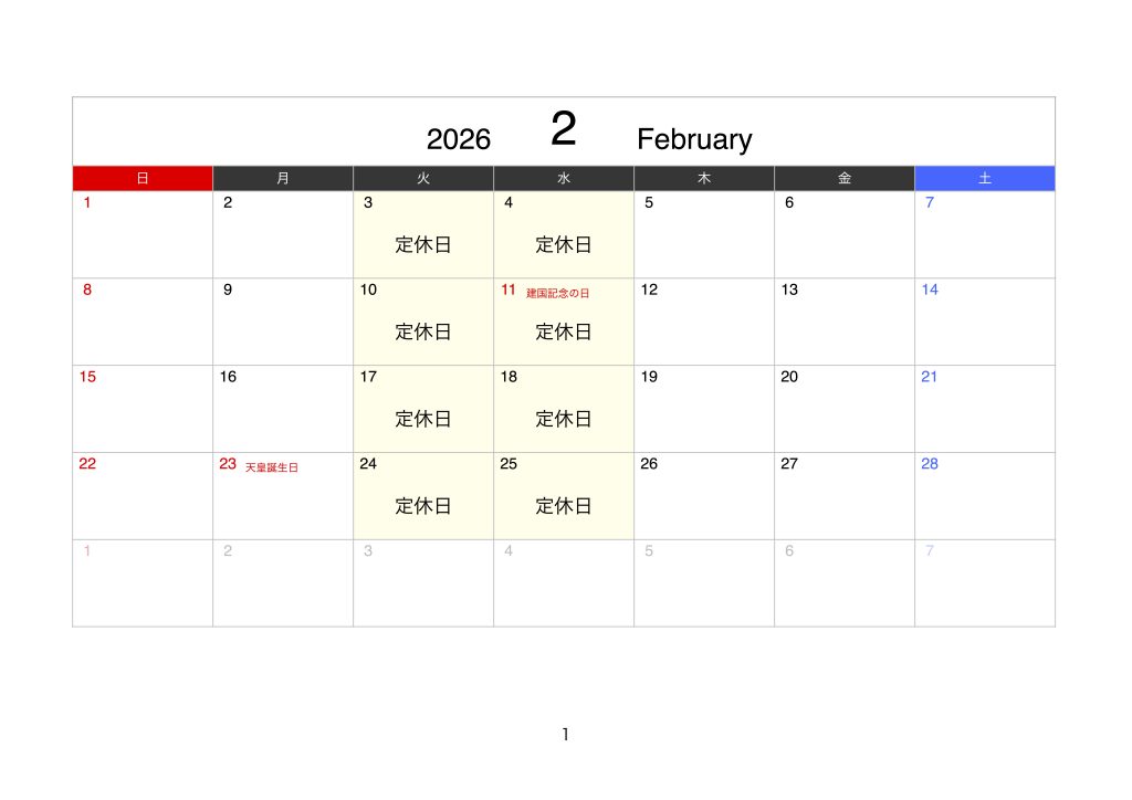 営業カレンダー