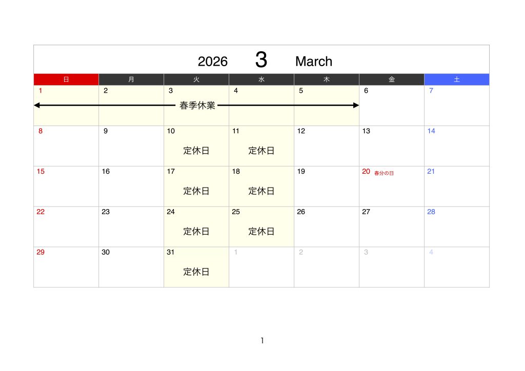 定休日:火曜日/水曜日